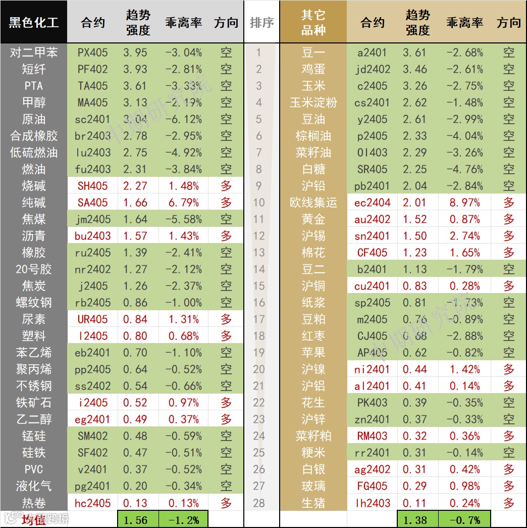 中期商品趋势榜 | 对二甲苯空头强势(1214)