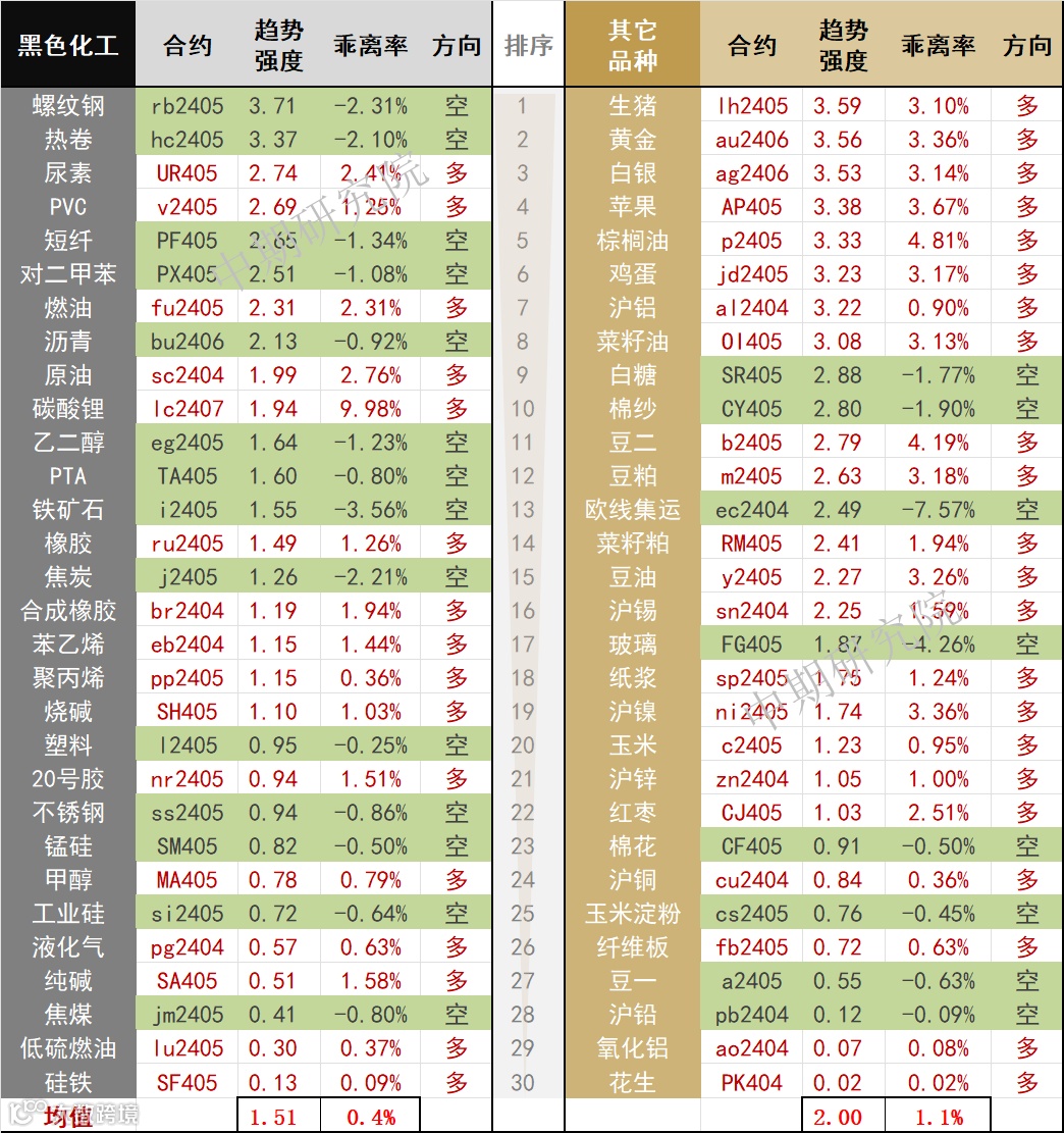 中期商品趋势榜 | 螺纹钢、热卷空头强势(0306)