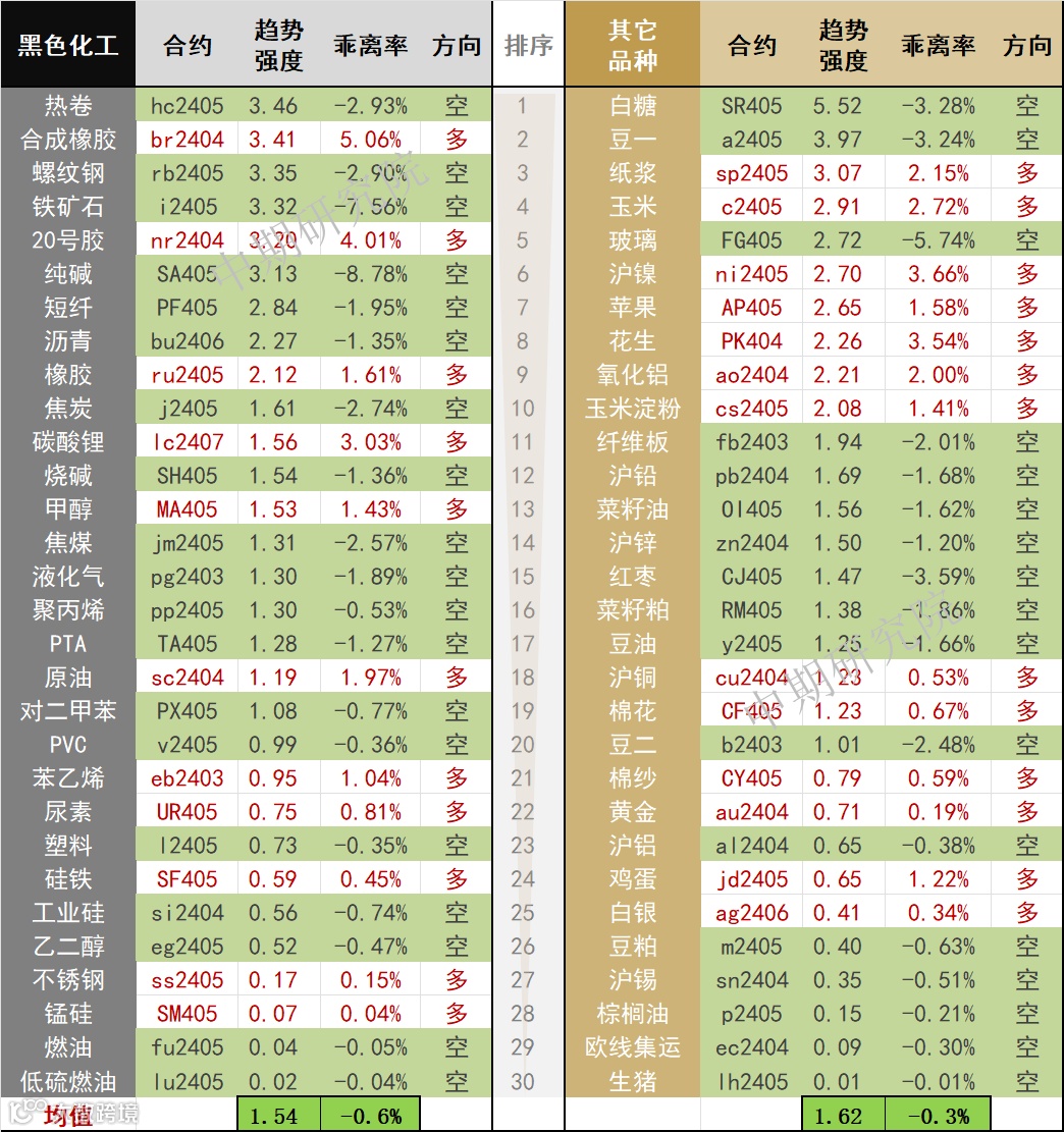 中期商品趋势榜 | 白糖、热卷空头强势(0226)