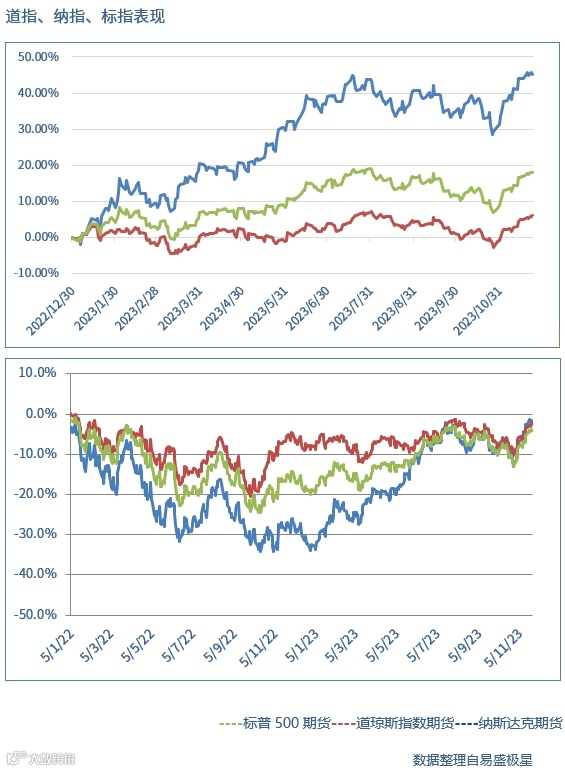 其实市场焦点不会在官员讲话,而是通胀数据以及经济是否软着陆,市场预期明年5月降息概率接近50%,这预期仍会支持股市仍会保持强势,目前纳指距离历史高位不足5%,未必要等待明年,今年余下时间已有机会再创新高。三大指数中股价企于50天平均在线的公司接近70%,站在200天均线以上亦接近50%,显示中长期前景的改善。