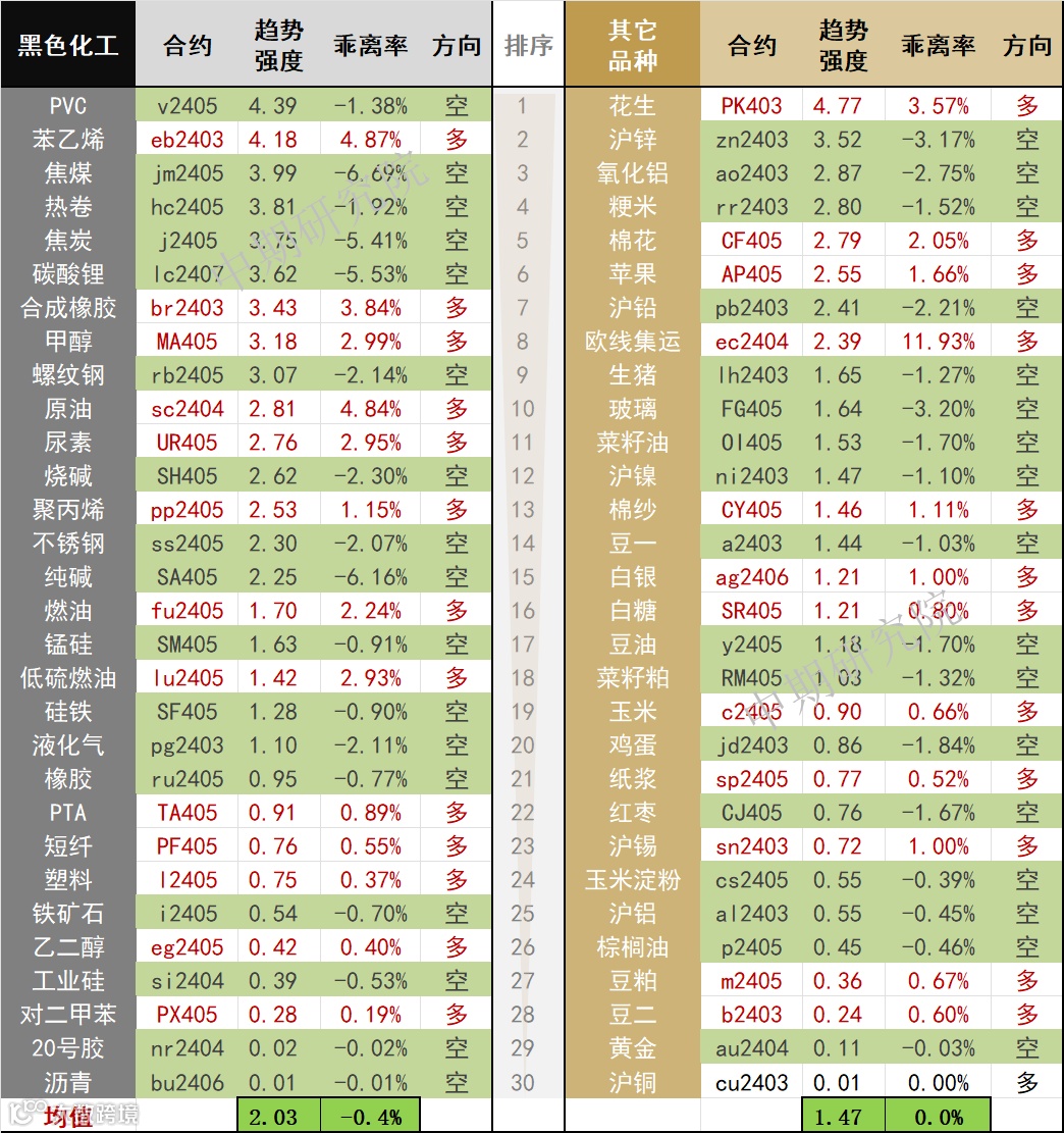 中期商品趋势榜 | PVC空头增强,花生多头增强(0219)