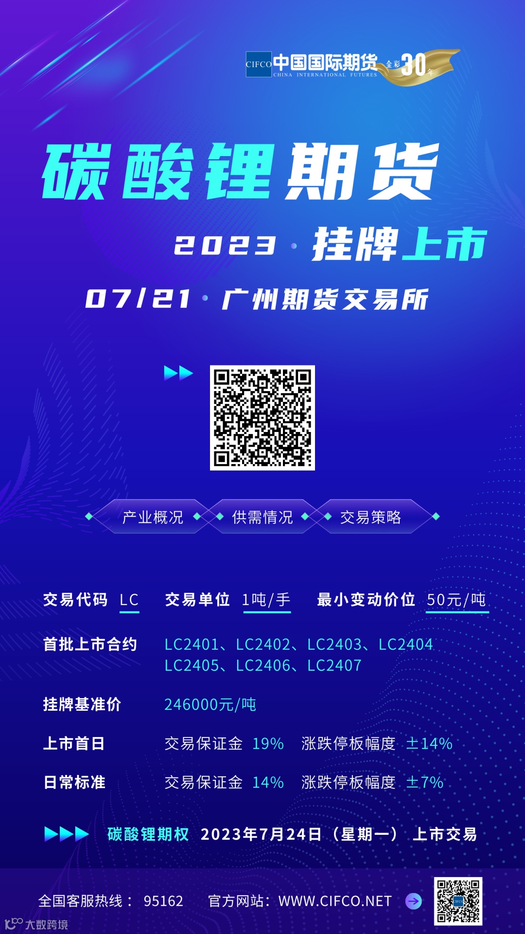 碳酸锂期货合约自2023年7月21日(星期五)起上市交易。