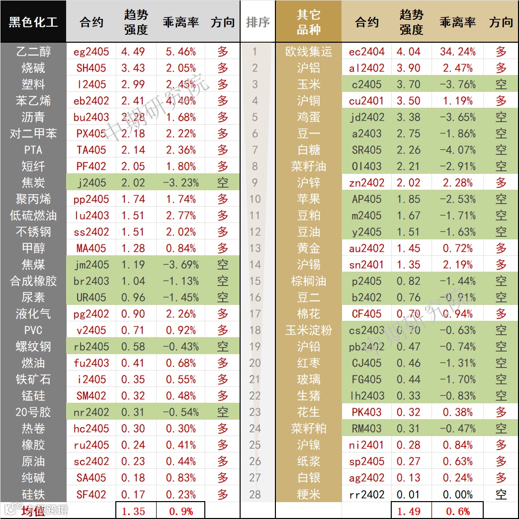 中期商品趋势榜 | 欧线集运、乙二醇领涨(1220)