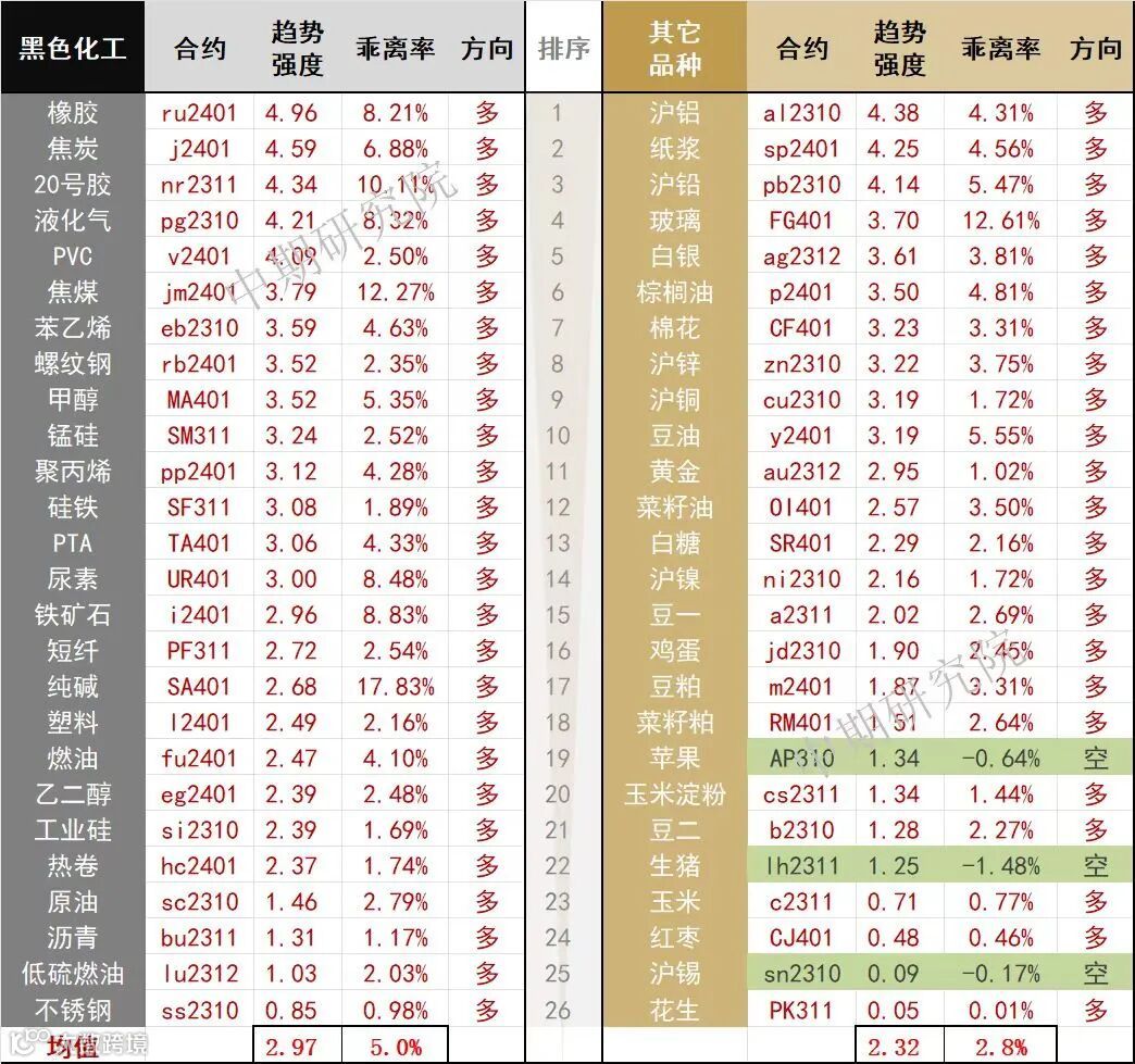 中期商品趋势榜 | 橡胶多头增强(0901)