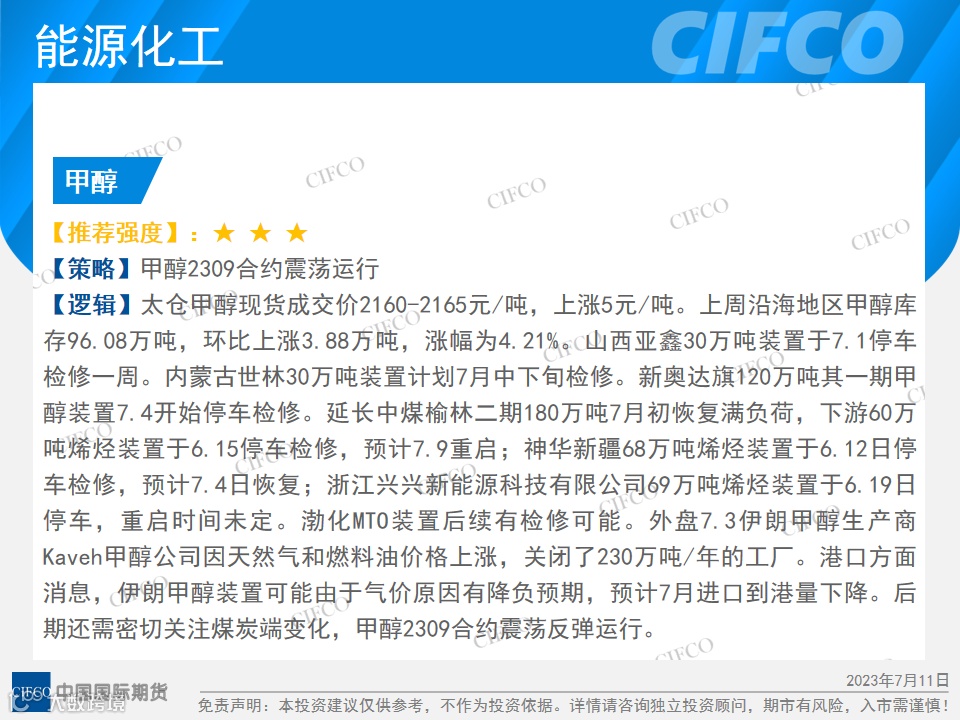 中期早知道 | 尿素甲醇上涨   沪锡震荡下跌 中国国际期货福建分公司