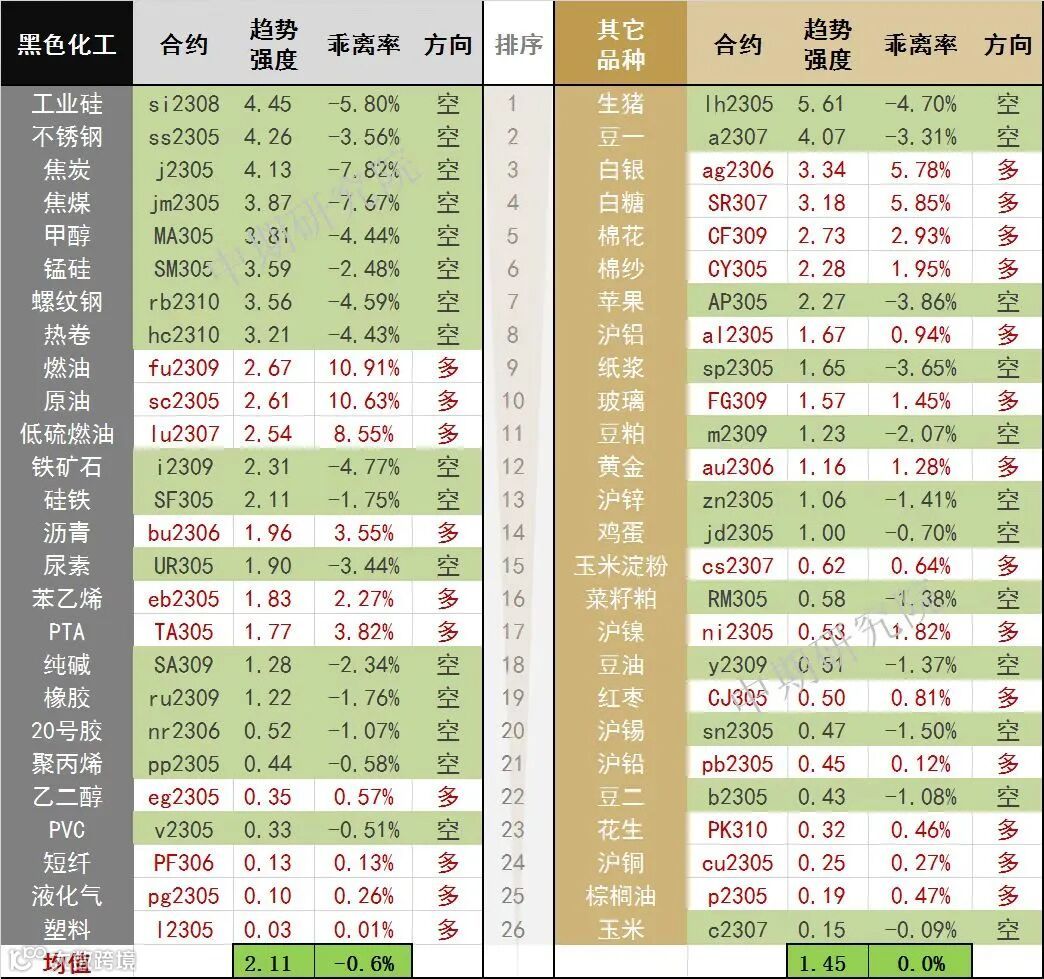 中期商品趋势榜 | 生猪空头持续强势(0410)