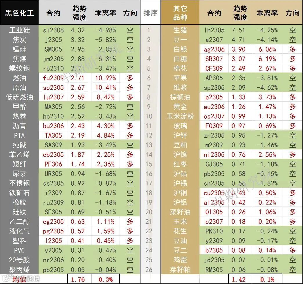 中期商品趋势榜 | 生猪空头保持强势(0411)