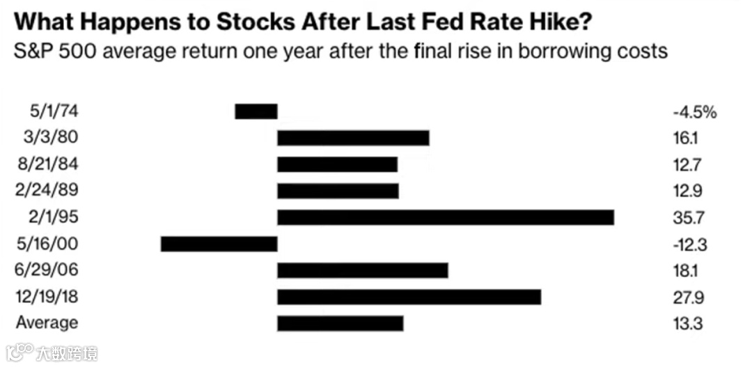 过去八次加息周期后,标普500一年后表现(图源:网络)