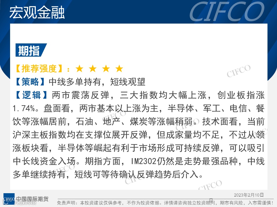 中期早知道 | 期指震荡上涨  PTA、豆粕下跌 中国国际期货福建分公司