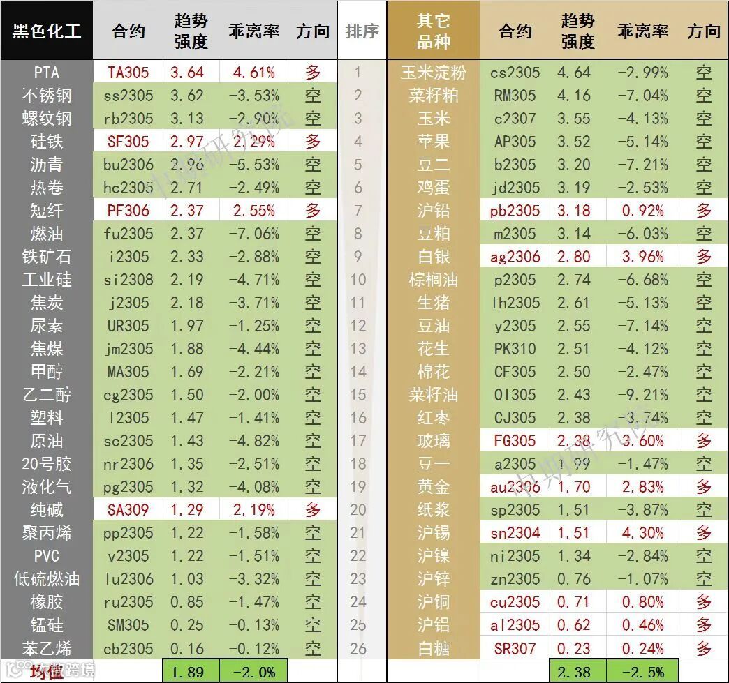中期商品趋势榜 | 菜籽粕空头持续强势(0327)