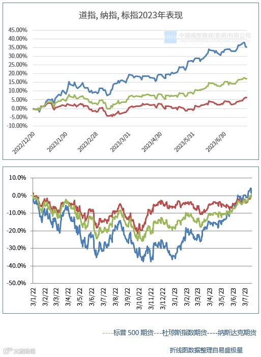 虽然市场焦点将在今日稍后美联储公布的议息会结果, 但根据彭博估计, 市场已预期这将是美联储最后一次加息行动, 然后利率将维持不变一段时间, 再加息机率微乎其微, 市场向好气氛不变, 上周虽然期货市场净流出107亿美元,美股净流入资金仍有700亿之多, 美股大空头mike wilson 亦宣布投降, 不再看空美股, 纳指16000阻力不轻, 上支持位已上移至15483水平, 若失守, 将表示纳指很大机会出现更深度调整。