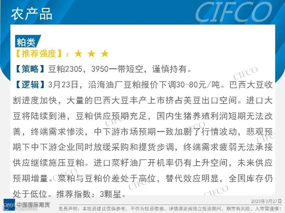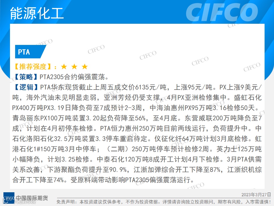中期早知道 | PTA震荡上涨  农产品弱势下跌 中国国际期货福建分公司