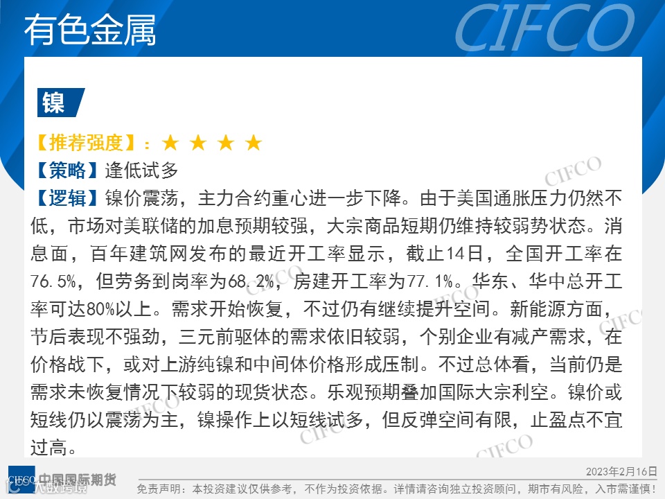 中期早知道 | 沪锌不锈钢弱势下跌  鸡蛋震荡上涨 中国国际期货福建分公司