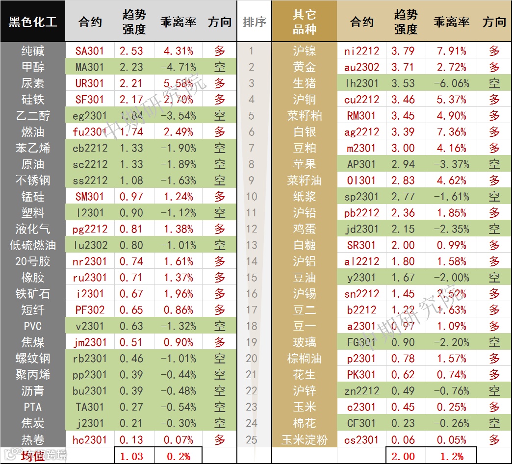 中期商品趋势榜 | 沪镍多头排名持续居前(1110)
