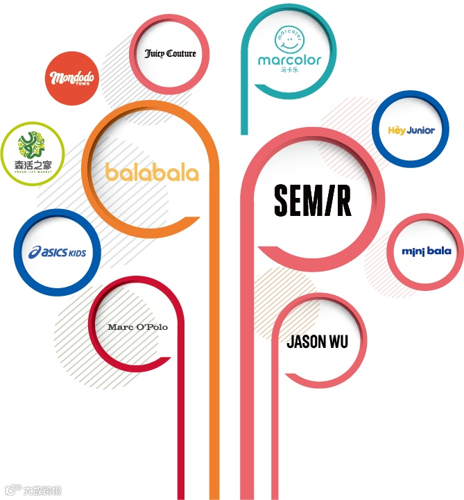 森马是一家以品牌服装经营为主导产业的综合性民营集团公司,现已拥有森马、巴拉巴拉、马卡乐、MARC O'POLO、Jason Wu、Juicy Couture、Hey Junior、Mini Bala、Asics Kids、梦多多小镇、森活之家、温州万象城等多个国内和国际知名品牌。
