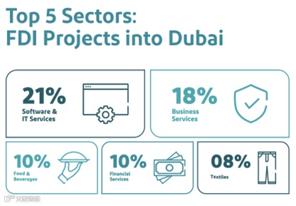 • 根据《2022年中东和非洲地区绿地投资》的报告,阿联酋吸引的外资中80%流向迪拜,主要集中在软件和信息服务、业务流程外包和金融服务等领域。
