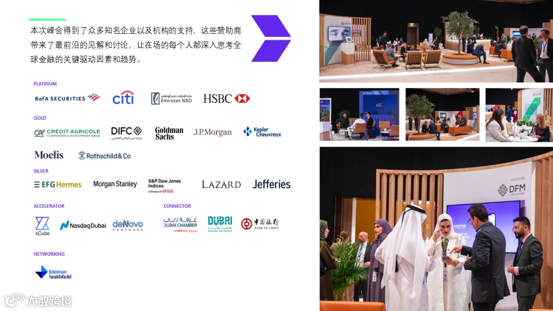 峰会的突出特点是创新的投资者中心,这是迪拜政府和企业领导人、知名上市和私营实体的首席执行官及高级管理人员与精选参与者分享独家见解的专用空间,提升了活动的价值主张。