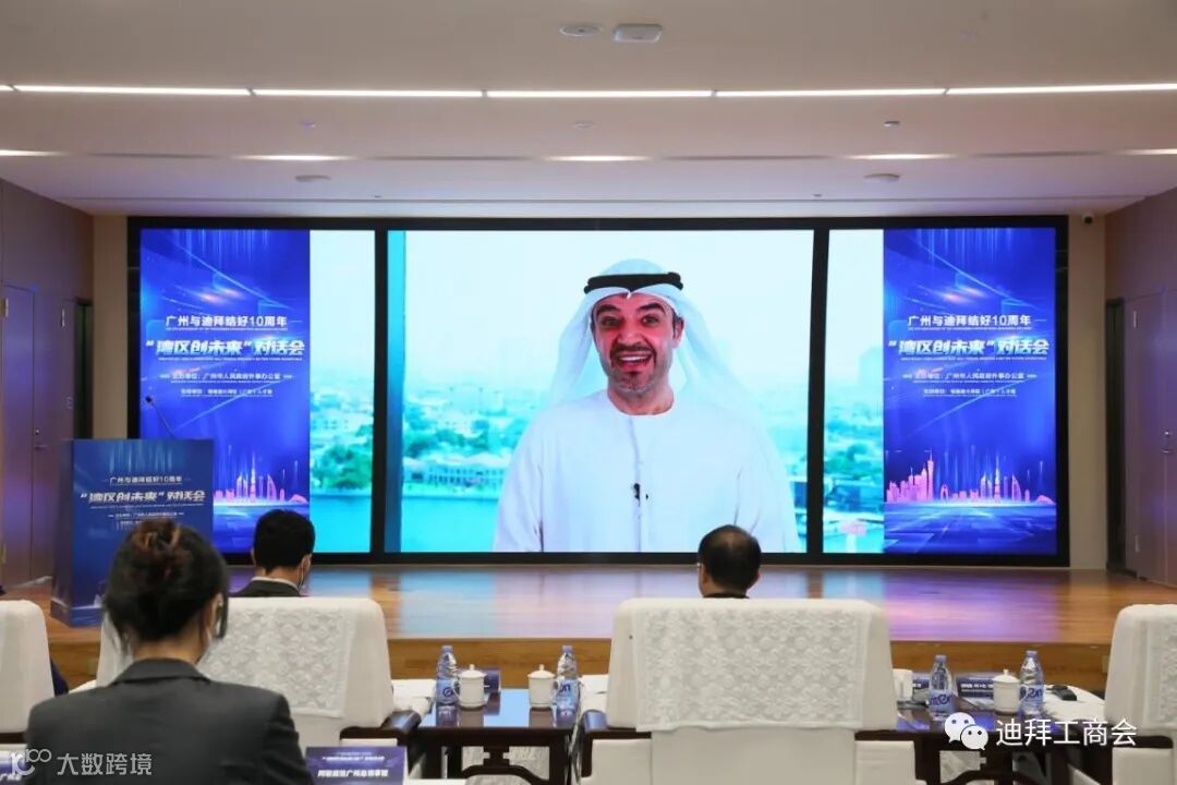 9月7日下午,由广州市人民政府外事办公室主办的“湾区创未来”对话会在粤港澳大湾区(广东)人才港举行。广州市人民政府外事办公室主任詹德村、中国驻迪拜总领事李旭航、阿联酋驻广州总领事拉哈曼·本·阿卜杜·拉赫曼·沙姆希、迪拜商会代主席兼首席执行官哈桑·阿尔·哈什米等嘉宾通过线下和线上方式出席活动,就如何拓展广州与迪拜友城深度合作进行对话。来自广州、深圳、迪拜、阿布扎比等地的重要嘉宾代表聚焦“大湾区-阿联酋科技创新边界”展开圆桌会讨论,相关科技创新机构、企业还进行了项目路演,吸引了80多名线上线下观众参与互动。