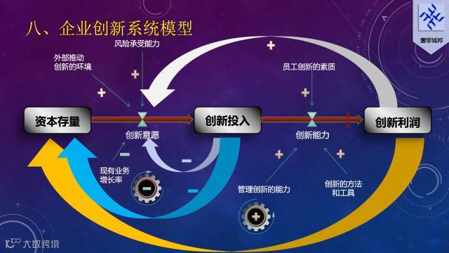 如何尝试创新呢,在我们的书中给大家提供了一个模型,我们先要懂得,创新如何能做到良性循环。当我们要做创新时,我们需要有企业资本存量,来进行创新投入,由管理者的创新意愿决定。而这个创新意愿又受三个变量影响:外部的环境推动,风险承受能力,现有业务增长率。当有了创新投入后,加上创新能力,就会有创新利润的回报。创新能力也受三个变量的影响:管理者管理创新的能力,员工创新的素质,企业创新的方法与工具。而创新利润又会反过来影响企业资本存量,管理者创新意愿,创新投入,由此形成完整循环。