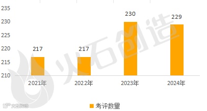 2021年,参与年度考核的国家级经开区总数为217个,到2024年经开区考评数量增长12个,达到229个。