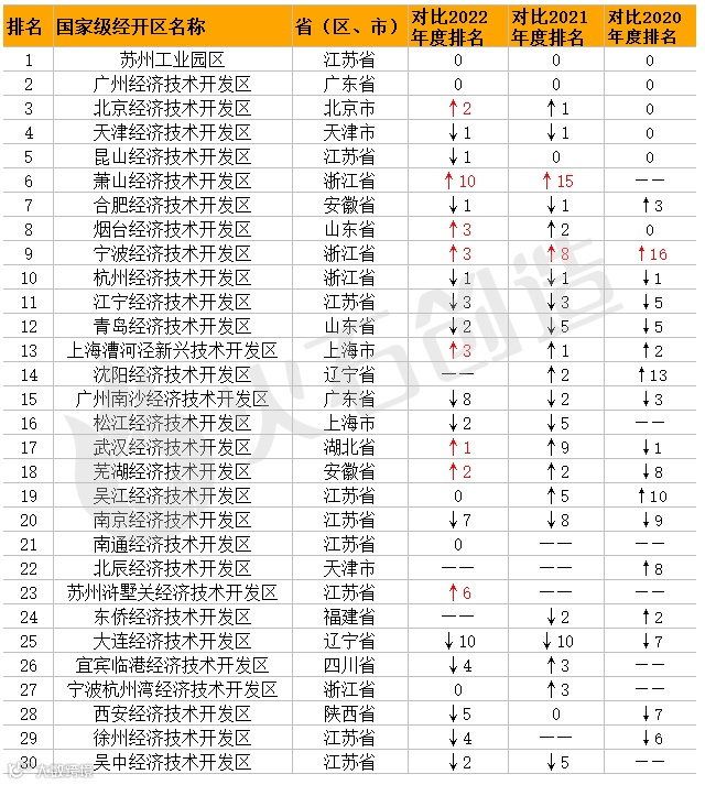 从近4年的国家级经开区综合排名30强名单上看,除了苏州工业园区、广州经济技术开发区稳居前2之外,各经开区排名每年均有不同程度的变化,有新晋也有退出,总体来看竞争激烈。