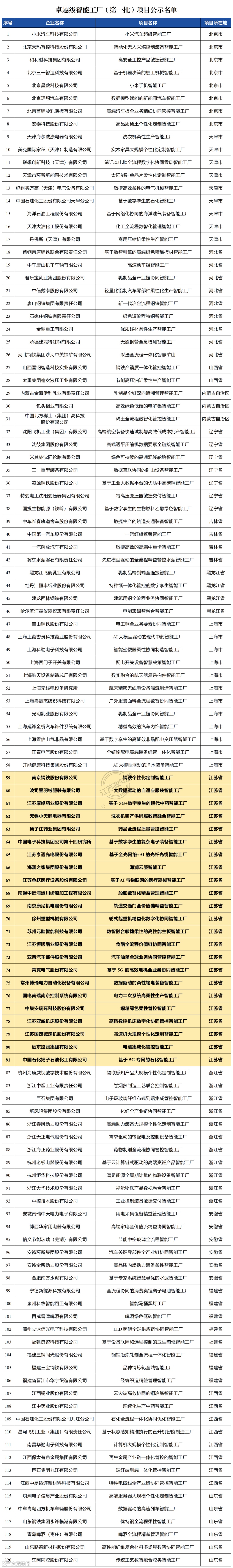 根据《关于开展2024年度智能工厂梯度培育行动的通知》(工信厅联通装函〔2024〕399号),现将拟入选的卓越级智能工厂(第一批)项目名单进行公示,请社会各界监督。