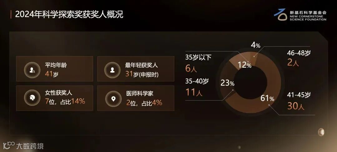 本年度“科学探索奖”获奖者平均年龄41岁,最年轻获奖人年仅31岁,10位38岁或以下的获奖人崭露头角。