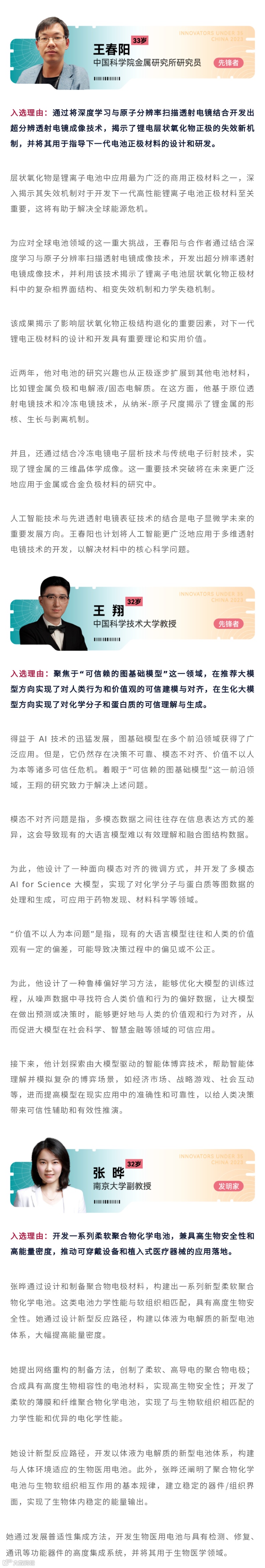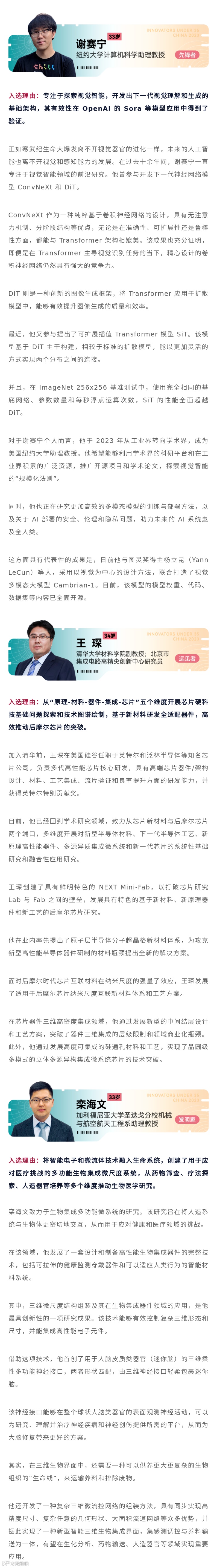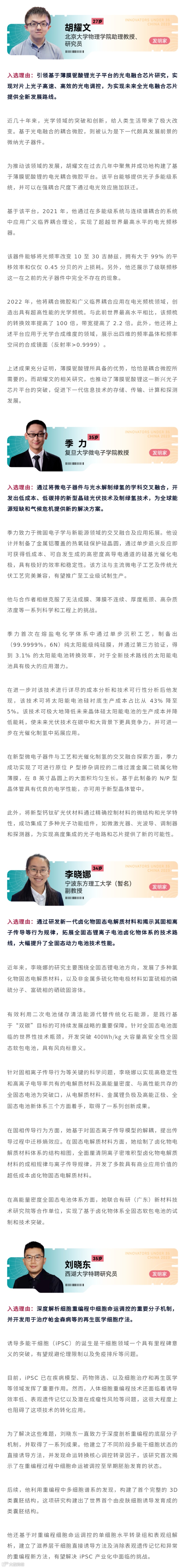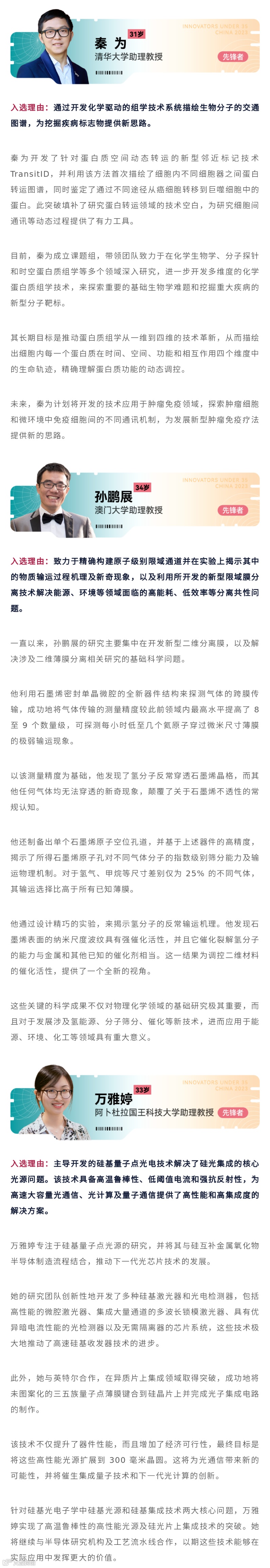 “35岁以下科技创新35人”中国入选者