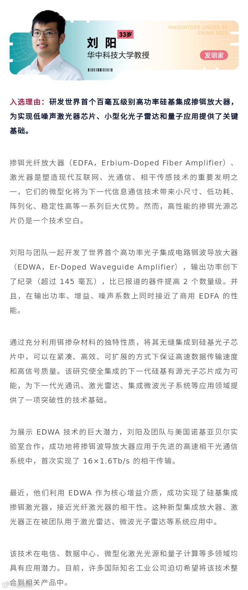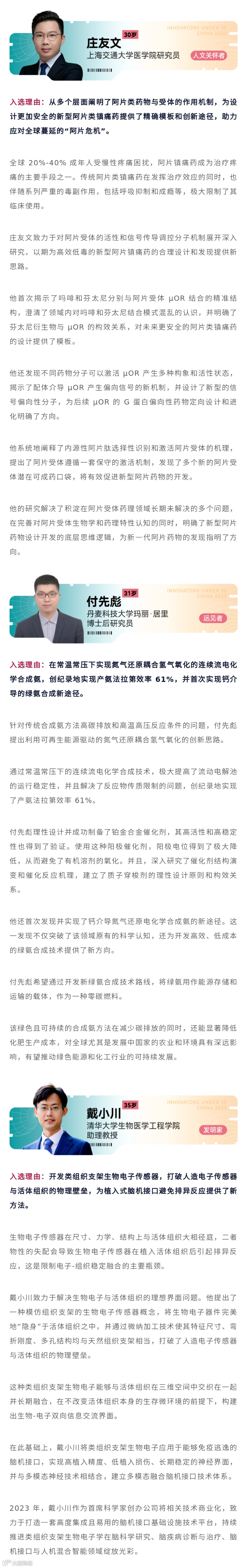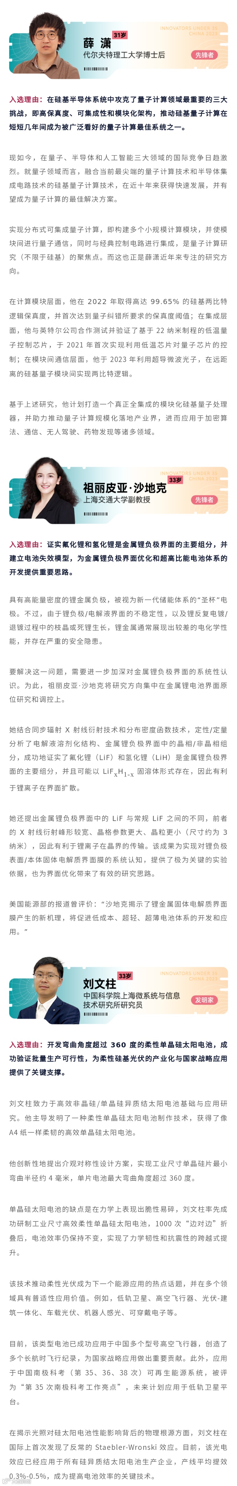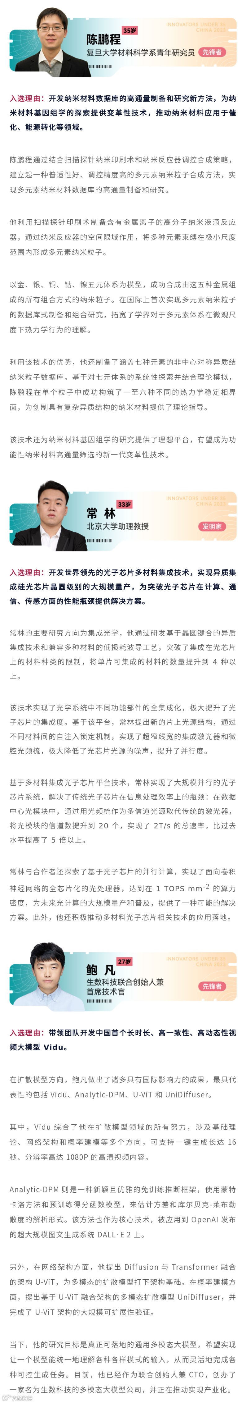 “35岁以下科技创新35人”中国入选者