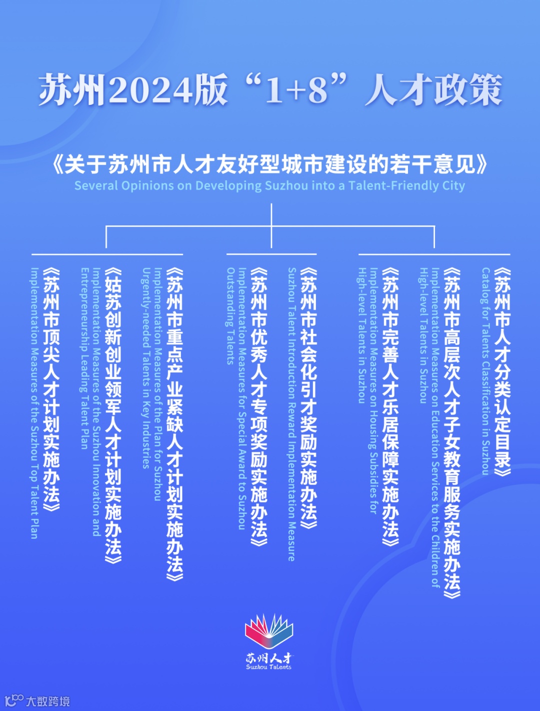 具体来看,“1+8”人才政策体系主要包括:《关于苏州市人才友好型城市建设的若干意见》1个统领性文件,顶尖人才、领军人才和重点产业紧缺人才3项重点人才计划,优秀人才专项奖励、社会化引才奖励2项专项奖励政策,人才乐居保障、高层次人才子女教育服务和人才分类认定目录3项服务保障政策。