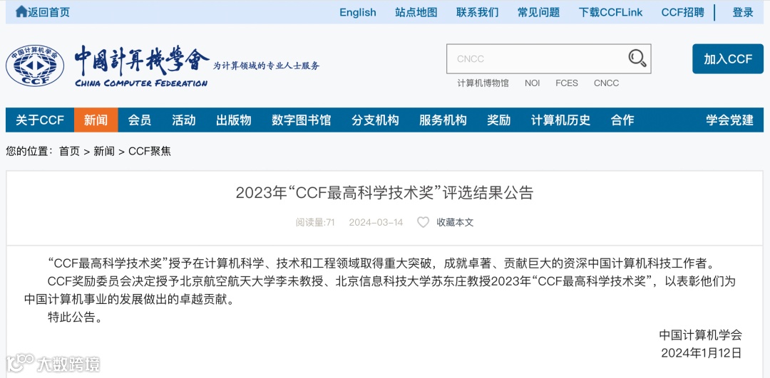 信息来源:中国计算机学会