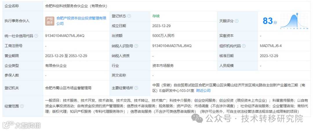 持股平台于2023年12月正式注册为合肥科创科技服务合伙企业(有限合伙),合伙企业通过与职务科技成果完成人共同成立成果转化公司,主动购买职务科技成果转化过程中高校院所不能持有或无法长期持有的股权部分,以提升成果转化成立企业的速度和效率。