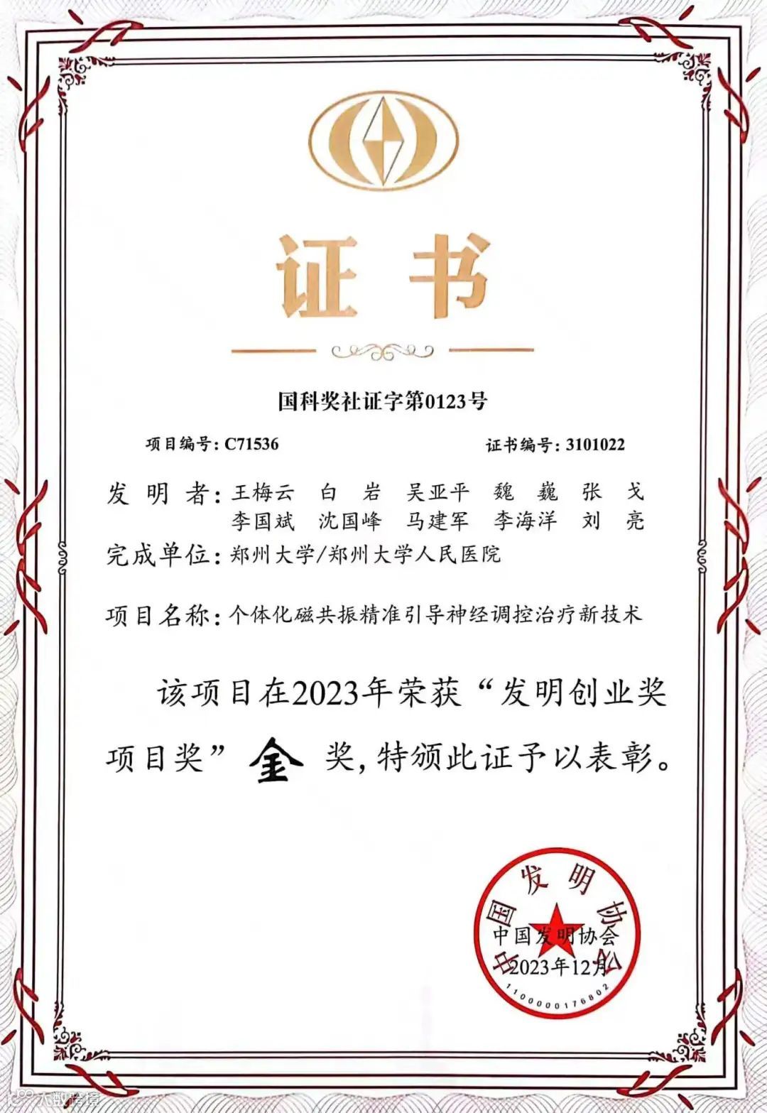 近日,2022-2023年“发明创业奖项目奖”和“一带一路”暨金砖国家技能发展与技术创新大赛颁奖典礼及优秀项目主题展览在北京国家科技传播中心举行。郑州大学王梅云教授凭借个体化磁共振精准引导神经调控治疗关键核心技术上的突破,荣获2023年中国唯一一个世界知识产权组织最佳女性发明奖。