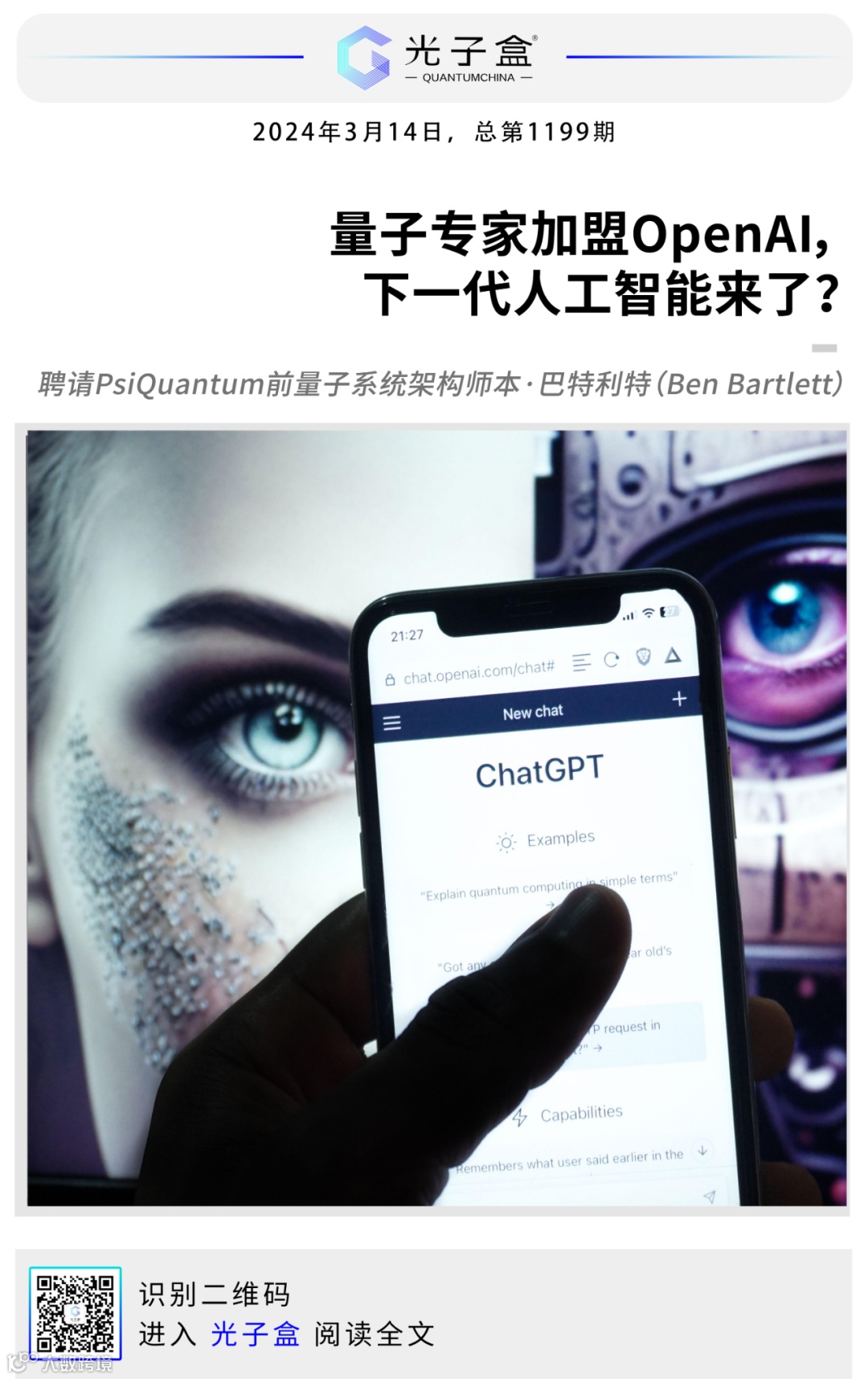 因此,OpenAI最近的招聘动向并不令人意外,他们正将目光投向量子计算领域。上周,这家人工智能领头羊从PsiQuantum公司挖来了前量子系统架构师本·巴特利特(Ben Bartlett)。