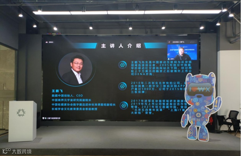 数藏中国是由海南数藏文化科技有限公司打造的数字藏品发行与交易平台,为艺术创作者、藏家、投资人提供数字藏品的铸造、发行、展览、社交等一站式服务。中国收藏家协会数字藏品团体标准课题组副组长、中物联区块链专委会副会长 王鹏飞通过数藏中国介绍、web3发展情况、元宇宙与数字藏品、web3未来展望四个部分分享了《数藏中国面向Web3的元宇宙与数字藏品创新与实践》。今后,数藏中国将持续挖掘优秀的传统文化,不断探索有中国特色的数字藏品的发展和元宇宙的建构之路。