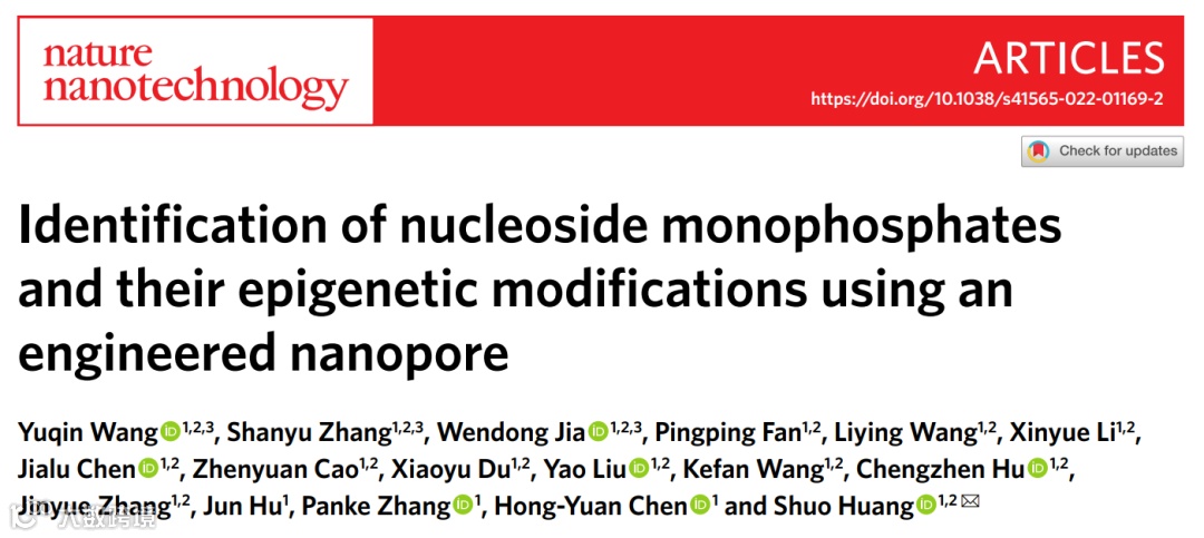 近日,南京大学化学化工学院黄硕教授团队在 Nature 子刊 Nature Nanotechnology 上发表了题为:Identification of nucleoside monophosphates and their epigenetic modifications using an engineered nanopore 的研究论文。