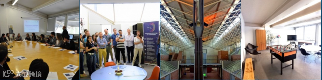 新钢铁孵化器在意大利科学城建有总部和众创空间,包括 35个专用模块(包括两个会议室)(50 至 100平方米)以及配备物流设施的开放式工作站,如:停车场、监控、接待、会议室、免费的网络连接,并与周边公共区域、绿地、酒吧和餐馆等签有协议。由于总部基于意大利科学城,因此这些众创空间的设施完备,还可以满足创业者提出的个性化定制要求。