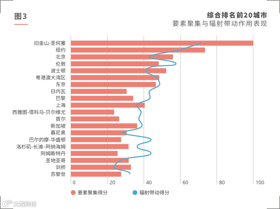 国际科技创新中心城市具有较强的创新要素聚集与辐射带动作用,旧金山-圣何塞、纽约、北京、波士顿等城市要素集聚水平突出;高素质人才和资源加快向纽约、北京、旧金山-圣何塞等科学中心聚集。共有19个中国城市(都市圈)进入榜单,且中国城市创新经济表现活跃,在科学中心、创新生态方面不断改善,创新能力得到整体提升。