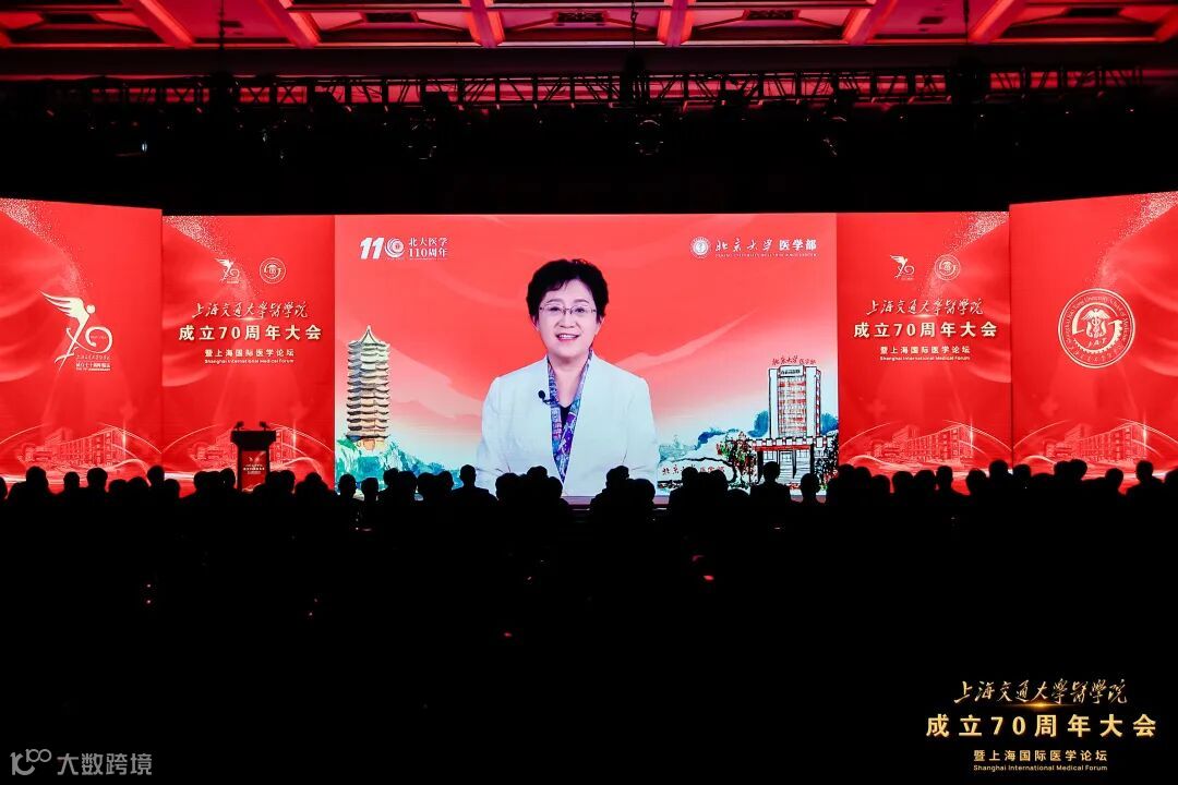 北京大学常务副校长、医学院主任、中国工程院院士乔杰通过视频方式对交大医学院成立70周年表示祝贺,她指出,七十年来,交大医学院始终坚持“报效祖国、服务人民”的办学使命,在国家医学教育、科研和医疗卫生事业发展中做出突出贡献。希望在新的起点上,与交大医学院加强合作,共同推动我国医学教育和医疗卫生事业发展,为人类健康做出更大贡献。