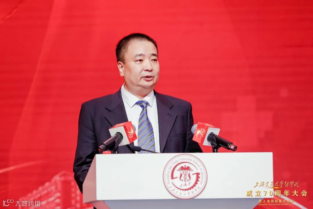 复旦大学校长、上海医学院院长、中国科学院院士金力代表兄弟医科院校向上海交通大学医学院成立70周年致以热烈祝贺,他表示,一路走来,上海交通大学医学院与复旦大学上海医学院砥砺同行,与国家共命运、与时代齐奋进,结下了深厚情谊。金力表示,在新的起点上,复旦上医愿与交大医学院携手共进,为中国医学教育和卫生健康事业,为世界医学的发展作出新的更大的贡献。