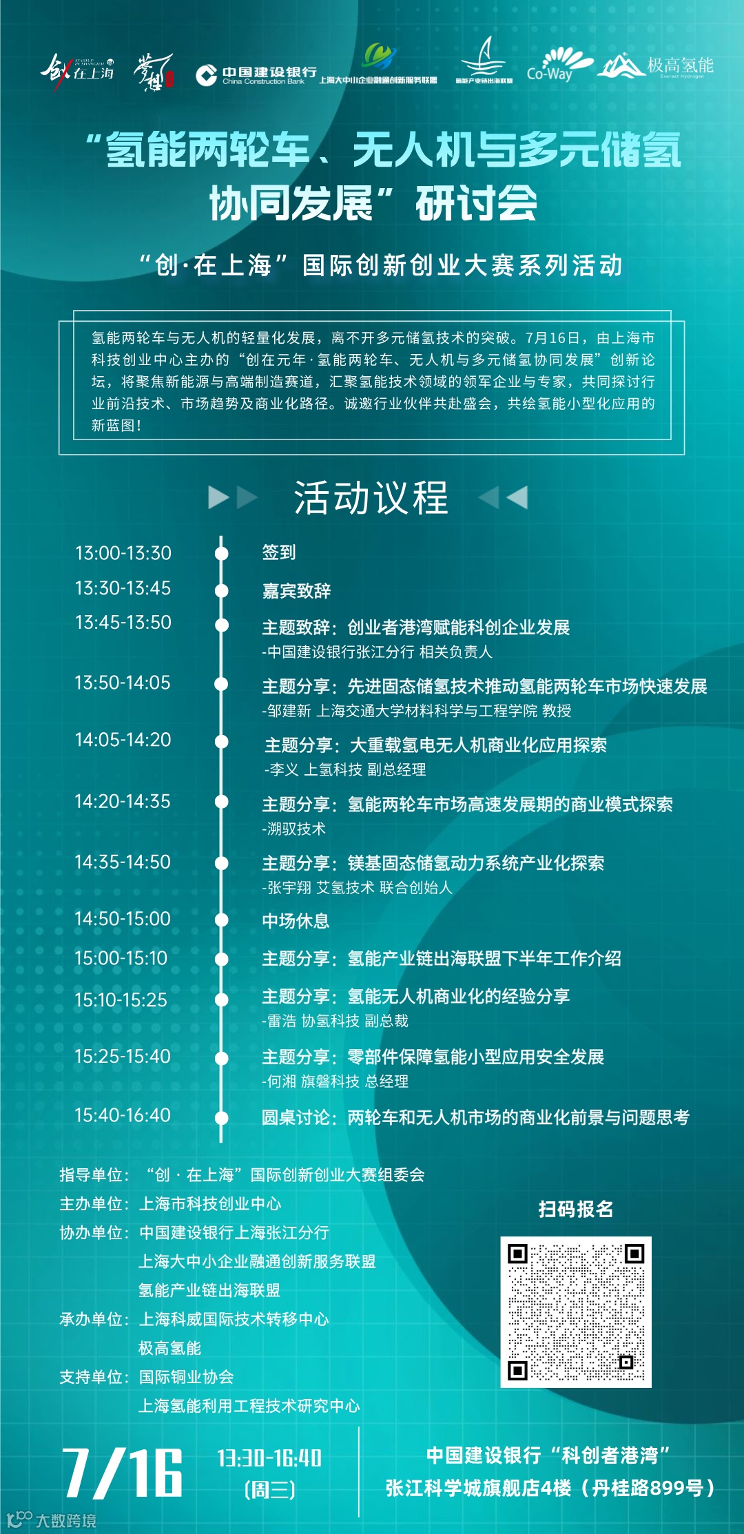 氢能两轮车与无人机的轻量化发展,离不开多元储氢技术的突破。7月16日下午,由上海市科技创业中心主办,上海科威国际技术转移中心和极高氢能共同承办的“创·在上海”国际创新创业大赛系列活动之“氢能两轮车、无人机与多元储氢协同发展”研讨会将在中国建设银行“科创者港湾”张江科学城旗舰店盛大启幕。本次论坛将聚焦新能源与高端制造赛道,汇聚氢能技术领域领军企业与专家,共同探讨行业前沿技术、市场趋势及商业化路径。诚邀氢能企业共赴盛会,共绘氢能小型化应用新蓝图!