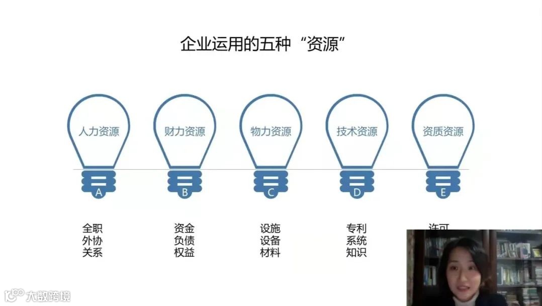 企业拥有可运用的5种:人力资源、财力资源、物力资源、技术资源、资质资源。