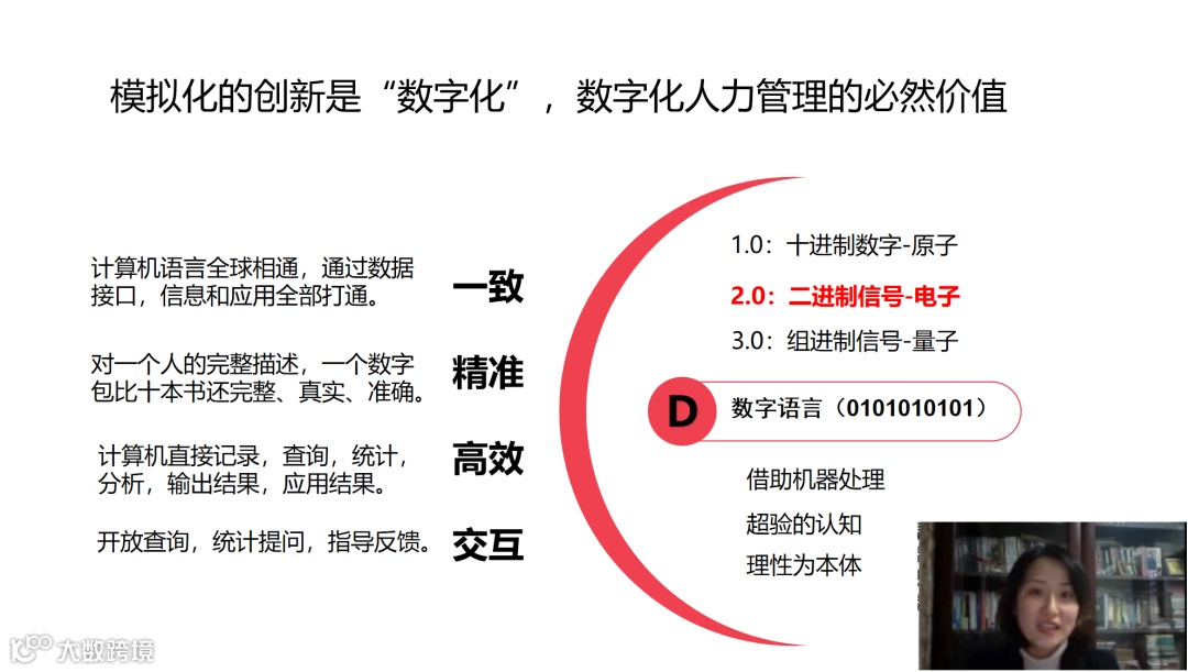 进入数字化时代,运用数字化的理念,我们会发现,人力资源管理的问题,源在“模拟化”管理。所谓模拟化,文本化是一种“模拟化”。从图腾到文字,再到音像,人类迄今为止使用的各种底层工具,都是模拟语言。模拟化是人力管理的必然问题。模拟化的创新是“数字化”,数字化是人力管理的必然价值。
