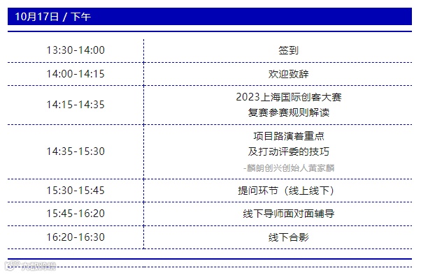 大赛主办方将于2023年10月17日下午组织复赛赛前辅导活动。