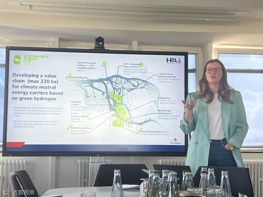 她呼吁中国企业参与进来,帮助解决汉堡市氢气、绿氨、绿色甲醇来源的难题。