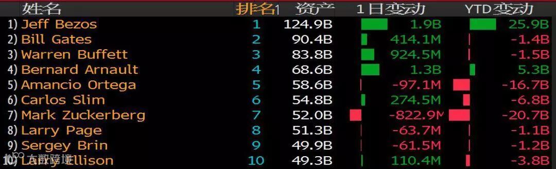 彭博亿万富翁指数榜单前十位
