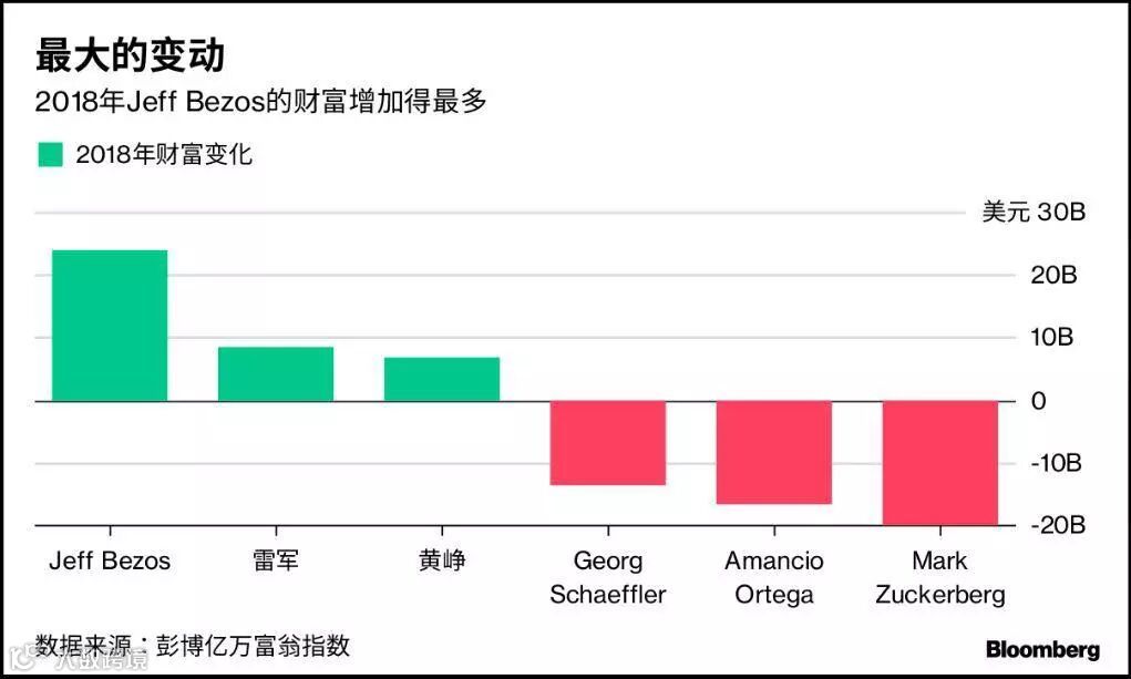 几家欢乐几家愁。尽管金融市场2018年下跌成为主基调,但仍然不妨碍有人在这一年获得巨额财富。贝佐斯、中国智能手机生产商小米的创始人雷军、拼多多创始人黄峥就是其中的幸运儿。