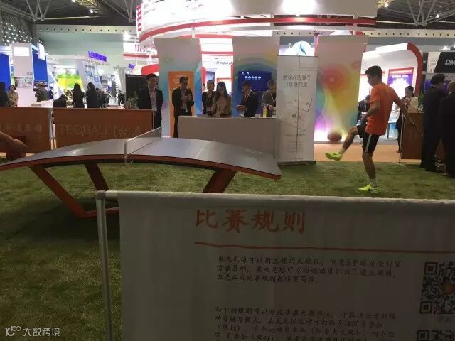 没有场地踢足球?来试试桌式足球吧!在一个仿佛弯曲了的乒乓球桌两端,两位小哥正乐此不疲地踢着,为本届上交会注入了更多活力。真是应了上交会的核心理念——技术,让生活更精彩!