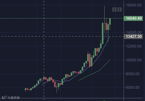 但是还不到3个月,12月8日单个比特币价格飙升突破19300美元、折合人民币约12.8万元,相比9月初的阶段性低价,价格暴涨了约761.9%。截至12月10日下午4时,比特币价格有所回调至13500美元,折合人民币约89570元。
