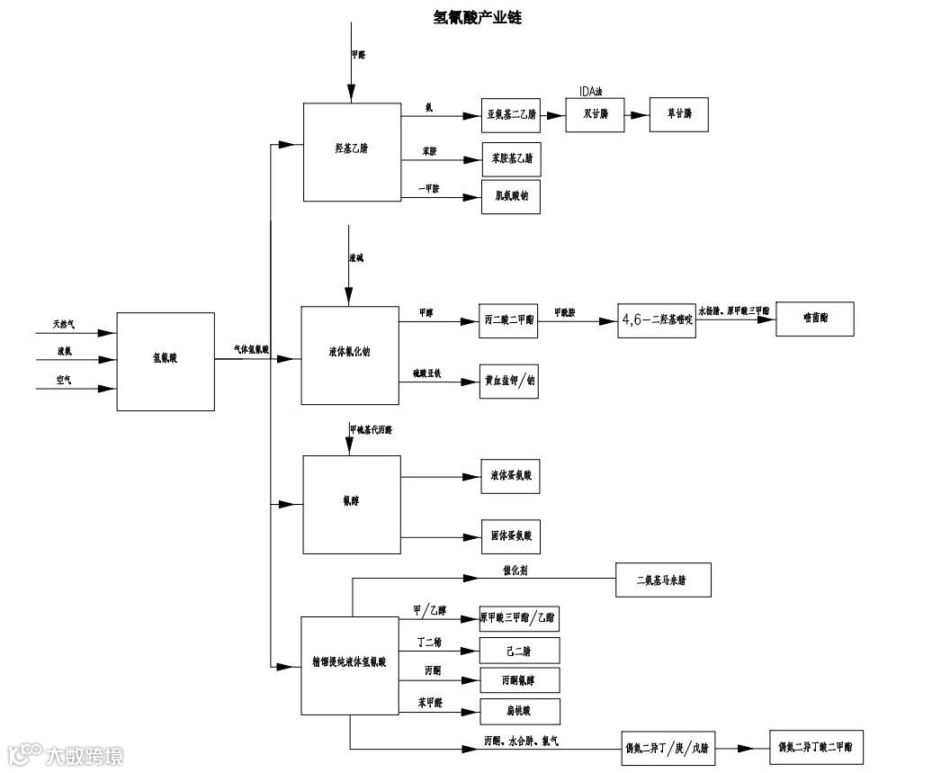 氢氰酸产业链详见下图: